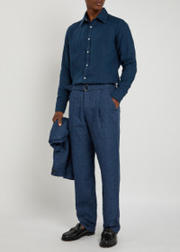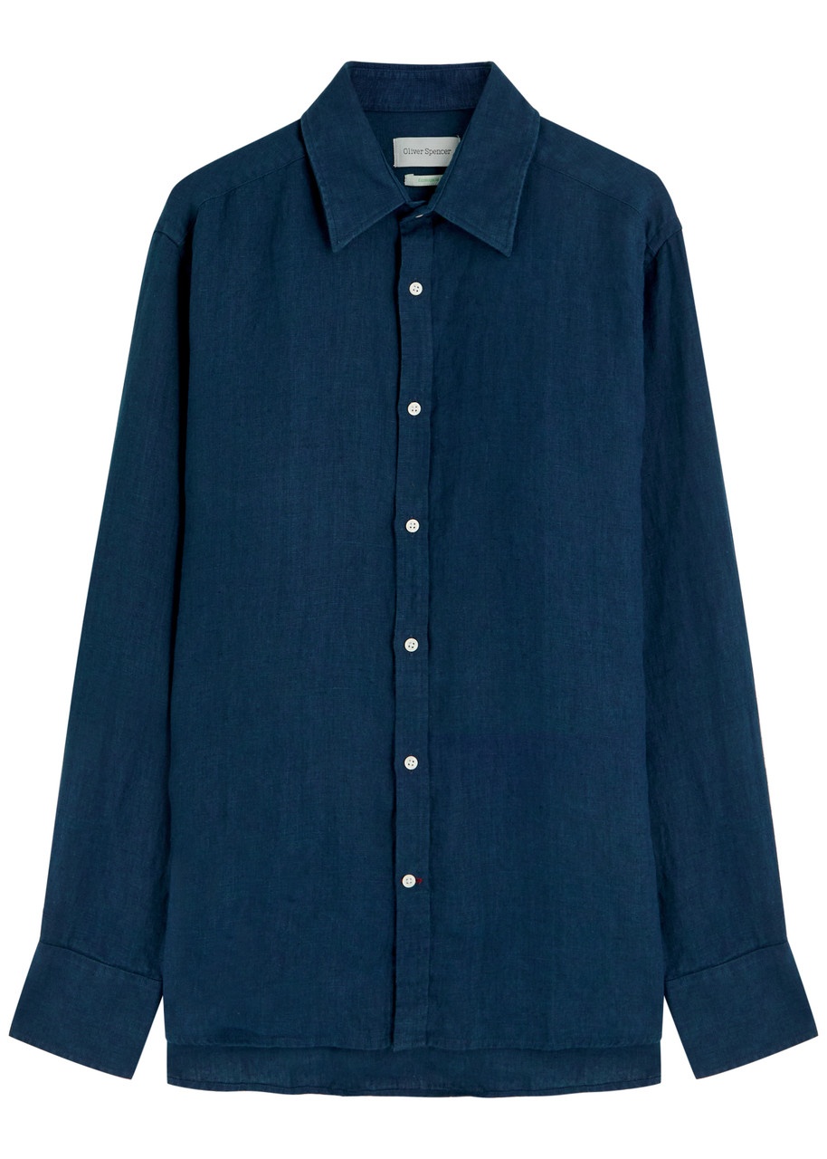 Info & Care Oliver Spencer linen shirt Button-fastening cuffs, curved hem Button-fastenings through front 100% linen Machine wash Size & Fit Length shoulder to hem: 28 inches/ 71cm Midweight Slightly relaxed fit Model is 6'1"/ 185cm, chest size 38.5 inches and wears a size medium