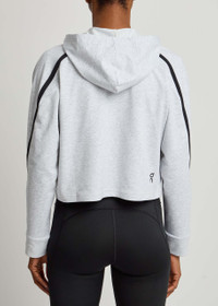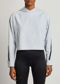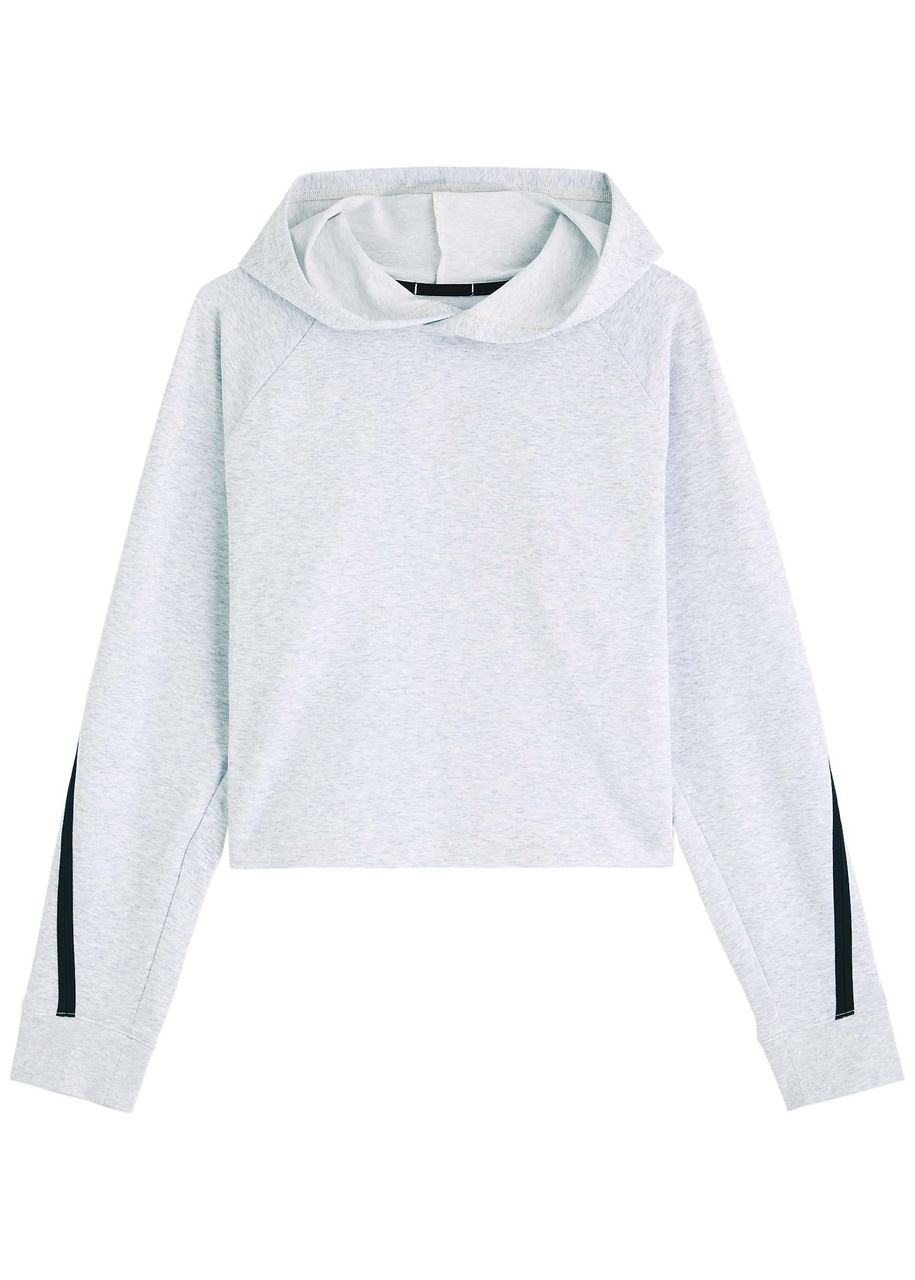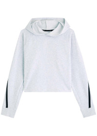 Info & Care On stretch-jersey sweatshirt Hood, contrasting panel through raglan sleeves, ribbed cuffs, logo print at back Slips on 48% recycled polyester, 46% organic cotton, 6% elastane Machine wash Size & Fit Length shoulder to hem: 19 inches/ 48cm Midweight Relaxed boxy fit, cropped Model is 5'10"/ 178cm and wears a size small
