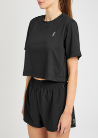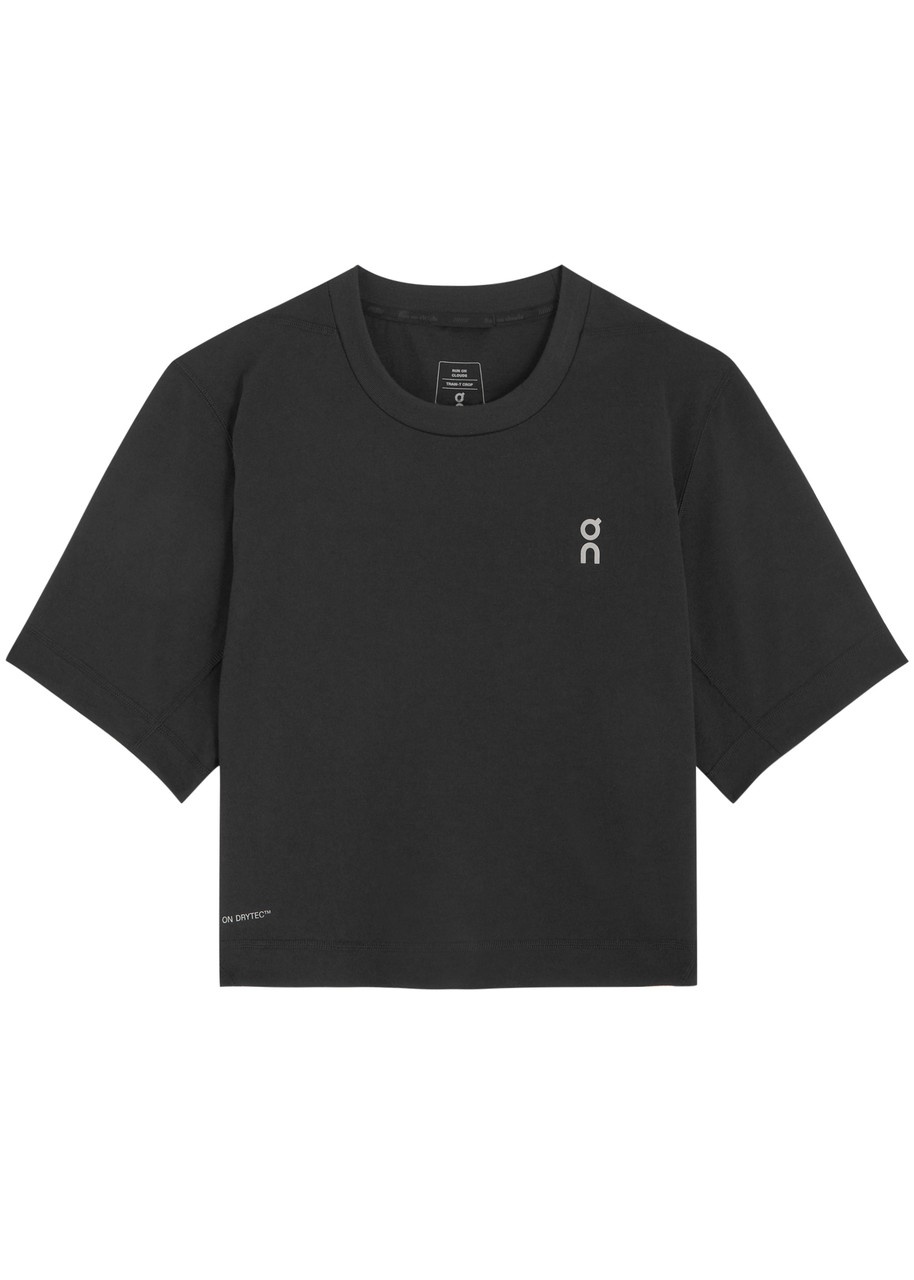 Info & Care On jersey T-shirt Ribbed crew-neck, logo print at front and back, exposed seams Slips on 100% polyester Machine wash Size & Fit Length shoulder to hem: 16.5 inches/ 42cm Midweight Relaxed fit, cropped Model is 5'9"/ 175cm and wears a size small