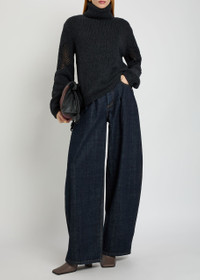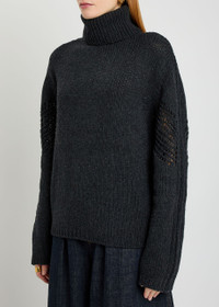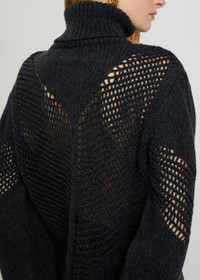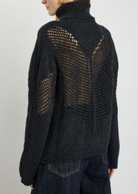 Info & Care Our Legacy merino wool;jumper; Cage-knit details, roll-neck, dropped shoulders, ribbed trims Slips on 100% merino wool Hand wash Size & Fit Length shoulder to hem: 25 inches/ 63.5cm Midweight Relaxed fit Model is 5'9"/ 175cm and wears a size;FR36