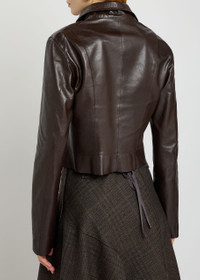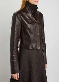 Info & Care Our Legacy leather jacket Panelled, funnel-neck, fully lined Two-way zip fastening through front 100% calf leather; lining: 52% viscose, 48% cotton Spot clean Size & Fit Length shoulder to hem: 19 inches/ 48.5cm Midweight Slim fit, slightly cropped Model is 5'9"/ 175cm and wears a size;FR36