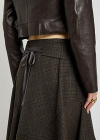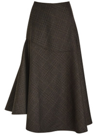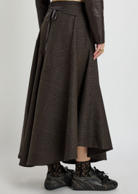 Info & Care Our Legacy wool skirt Checked jacquard, tie-fastening lace-up panels at back, bias-cut panels, asymmetric hem Partially concealed button and zip fastening at side 100% virgin wool Dry clean Size & Fit Length waist to hem: 1: 33 inches/ 84cm; 2: 37 inches/ 94cm Midweight Flared style, designed to sit at the waist Model is 5'9"/ 175cm and wears a size;FR36