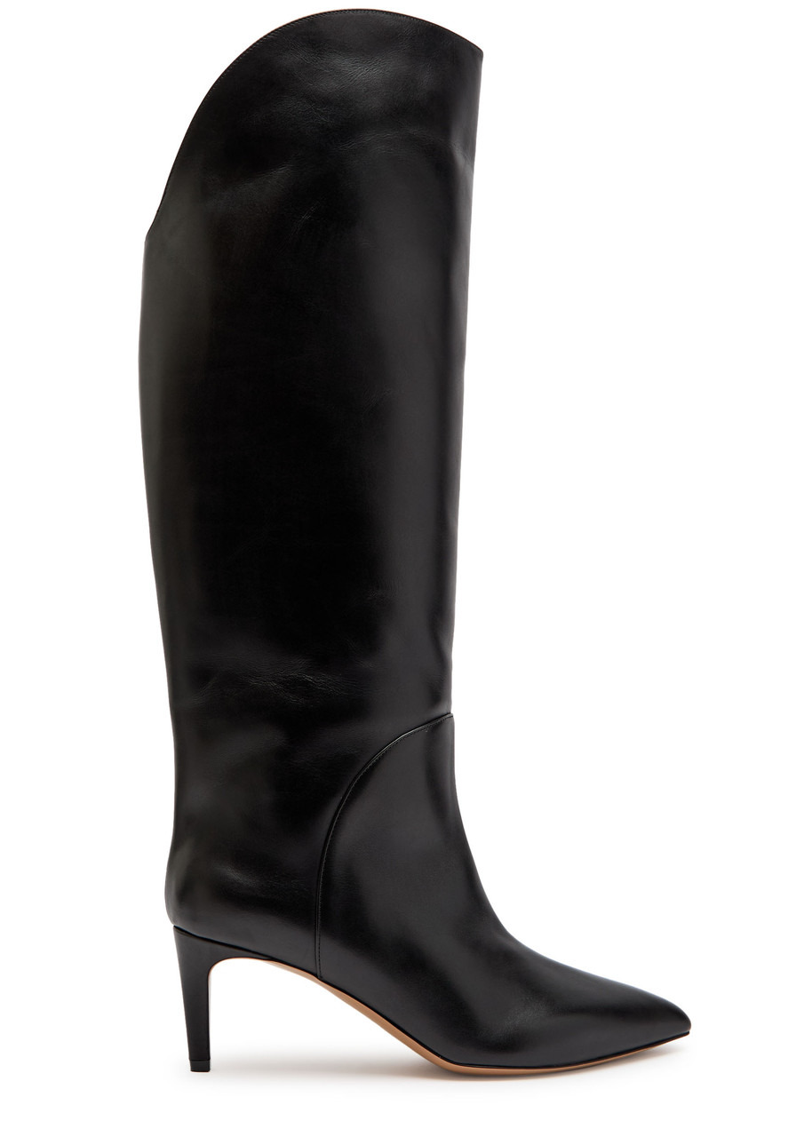 Info & Care Paris Texas leather knee-high boots Heel measures approximately 2.5 inches/ 60mm Pointed toe Pull-on Size & Fit Narrow across the toe Only available in full sizes, go up to the nearest whole size if you take a half size