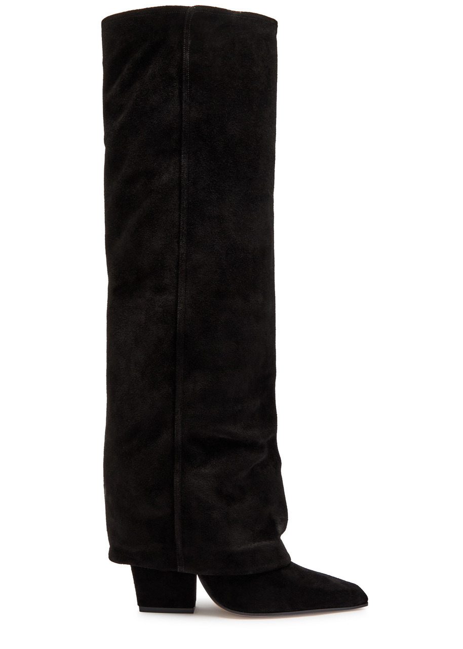 Info & Care Paris Texas suede knee-high boots Block heel measures approximately 4 inches/ 100mm Fold-over panel, leather lining, pointed toe Pull-on Size & Fit Only available in full sizes, go up to the nearest whole size if you take a half size