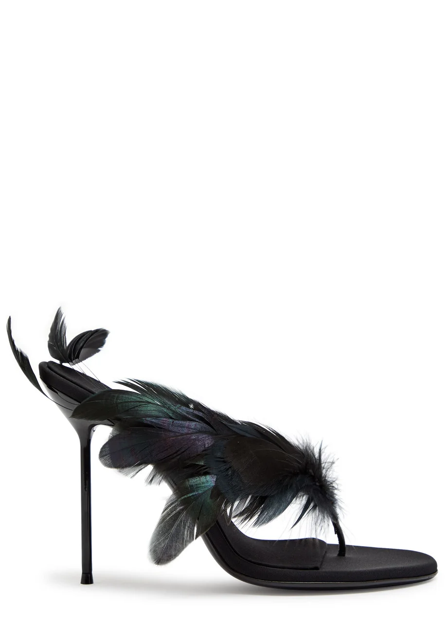 Paris Texas Lidia Feather 105 Crepe Thong Mules