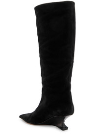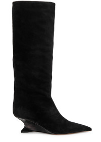 Info & Care Paris Texas;suede;knee-high boots Sculpted wedge heel measures approximately 2 inches/ 50mm; Crocodile-effect leather heel, pointed toe Pull-on Size & Fit Narrow across the toe Only available in full sizes, go up to the nearest whole size if you take a half size