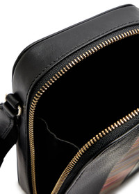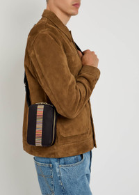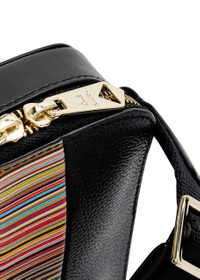 Info & Care Paul Smith grained leather cross-body bag; Adjustable;canvas shoulder strap,;logo stamp, signature striped trim,;internal slip pocket, fully lined Two-way zip fastening Size & Fit Width: 5 inches/ 12.5cm Height: 7 inches/ 18cm Depth: 2 inches/ 5cm Min. shoulder strap drop: 14 inches/ 35.5cm Max. shoulder strap drop: 24.5 inches/ 62cm