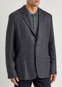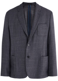 Info & Care PS Paul Smith wool-blend blazer Subtle checked jacquard, notched lapels, button-fastening cuffs with signature striped panel, three front patch pockets, back vents, two internal patch pockets Button fastenings at front 88% wool, 12% silk Dry clean Size & Fit Length shoulder to hem: 30 inches/ 76cm Midweight Regular fit Model is 6'1"/ 185cm, chest size 38 inches and wears a size IT48