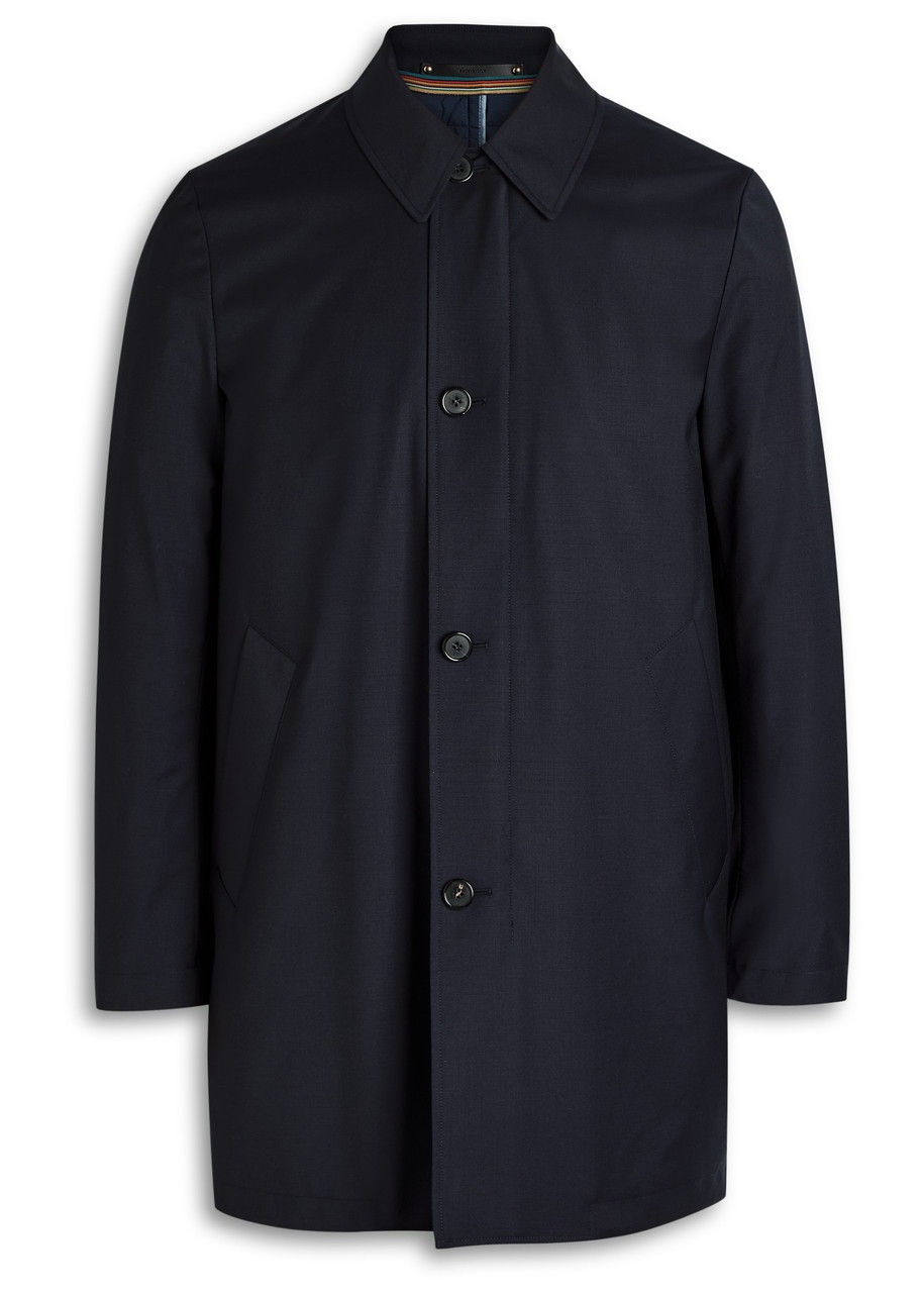Info & Care Paul Smith woven jacket Water-resistant, removable shell gilet insert, side slip pockets, internal zip-fastening pocket, internal slit pocket, fully lined Button fastenings through front 100% wool; gilet: 100% wool; lining: 100% cupro; lining 2: 100% cotton; lining 3: 100% polyester Dry clean Size & Fit Length shoulder to hem: 34 inches/ 86.5cm Midweight Relaxed fit Model is 6'3"/ 192cm, chest size 34.5 inches and wears a size medium