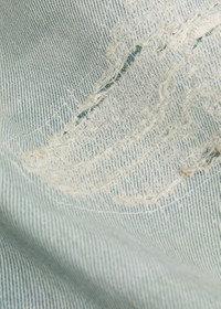Info & Care PDF Channel denim jeans High-rise fit, wide-leg cut, belt loops, five pockets, pin-tuck details, rubber applique at back, designer tag and embroidery at back pockets, distressed and faded finish; Partially concealed button and zip fastenings at front 100% cotton Hand wash; Size & Fit Front rise: 15.5 inches/ 39cm Inside leg length: 28 inches/ 71cm Midweight Model is 6'1"/ 185cm and wears a size;W32