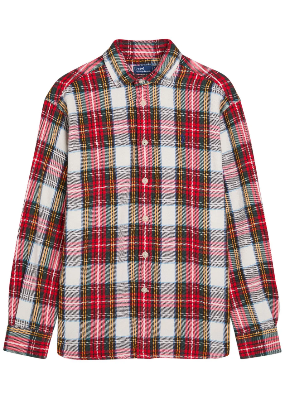 Info & Care Polo Ralph Lauren cotton shirt Plaid, button-fastening cuffs, embroidered designer crest, side splits at curved hem Button fastenings through front 100% cotton Machine wash Size & Fit Length shoulder to hem: 26 inches/ 66cm Midweight Regular fit Model is 5'9"/ 175cm and wears a size small