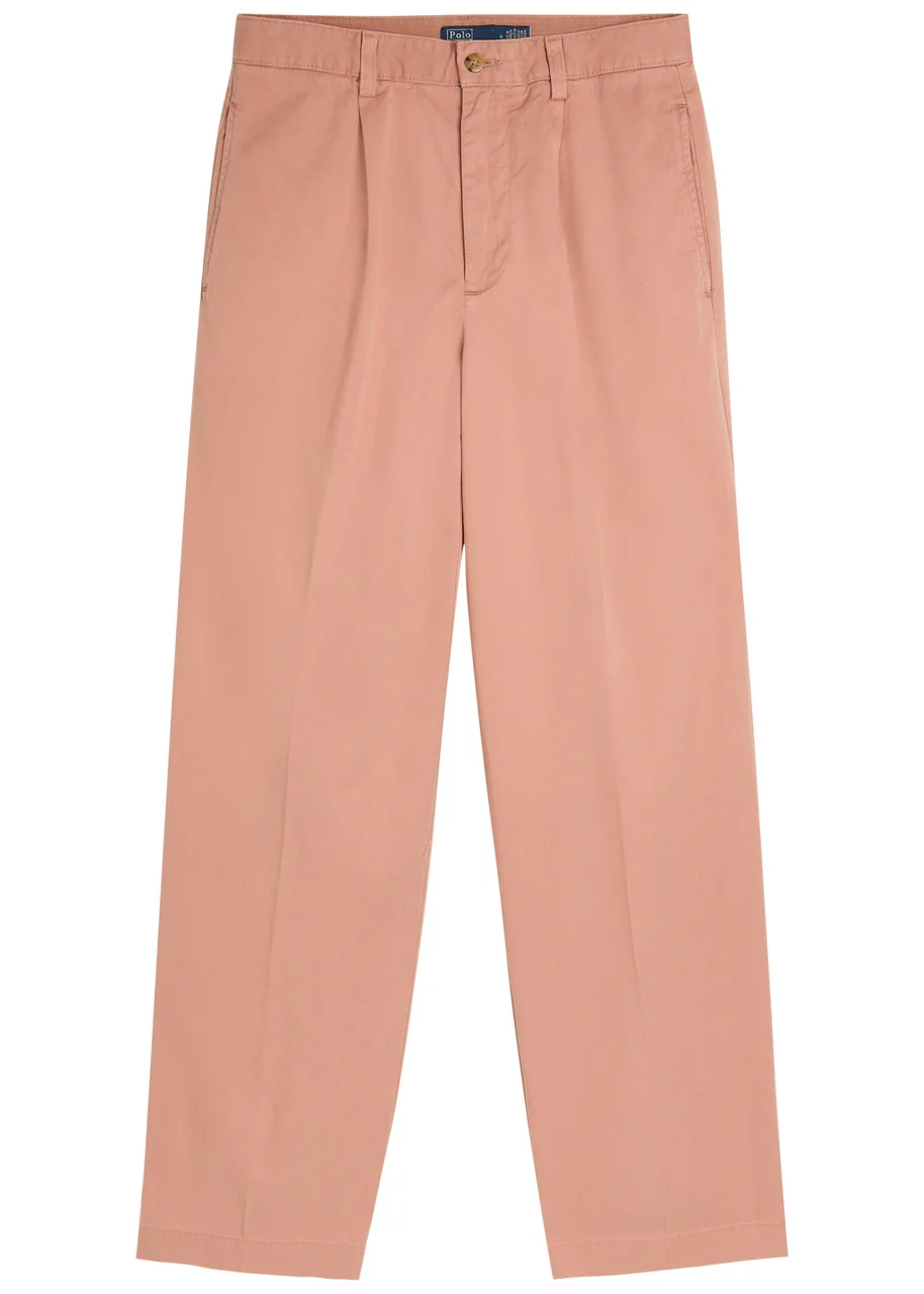 Info & Care Polo Ralph Lauren cotton-blend trousers Belt loops, pleats at waist, side slip pockets, pressed crease through legs, button-fastening back pockets Partially concealed button and zip fastening at front 70% cotton, 30% lyocell Machine wash Size & Fit Inside leg length: 32 inches/ 81cm Midweight Relaxed fit, straight-leg cut Model is 5'9"/ 175cm and wears a size;US4