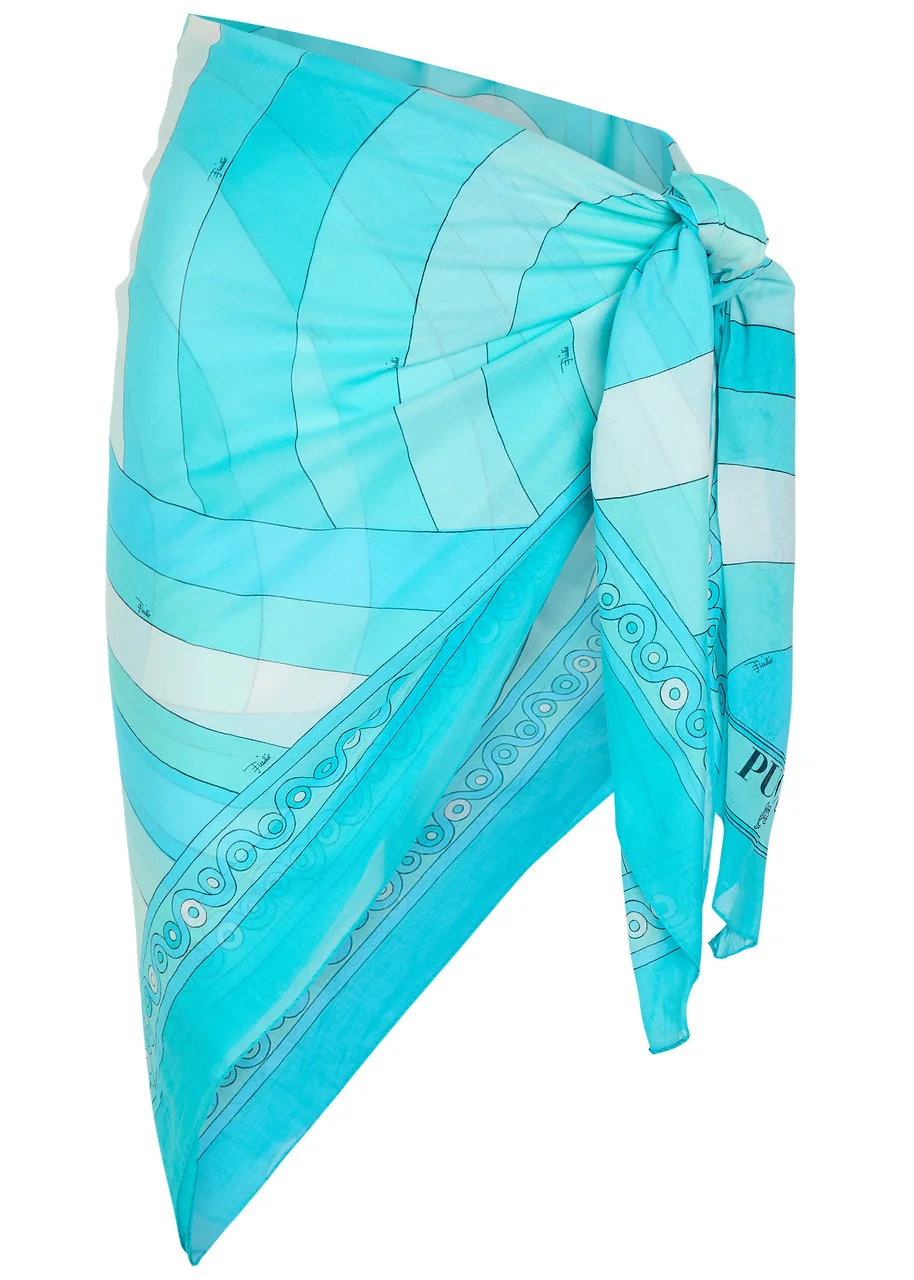Info & Care Pucci cotton sarong Printed, logo print details Can be styled in multiple ways Coordinating items available; Size & Fit Width: 125cm Length: 140cm