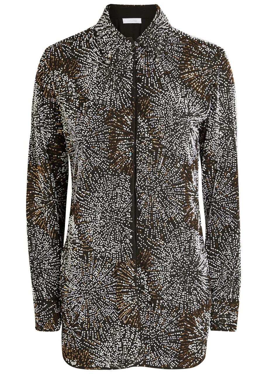 Info & Care Rabanne crepe shirt Bead embellishments, button-fastening cuffs, chain embellishment at back neck, side splits at curved hem, fully lined Concealed button fastenings through front 100% polyester Dry clean Size & Fit Length shoulder to hem: 29.5 inches/ 75cm Heavyweight Regular fit,;straight cut Model is 5'9"/ 175cm and wears a size;FR36