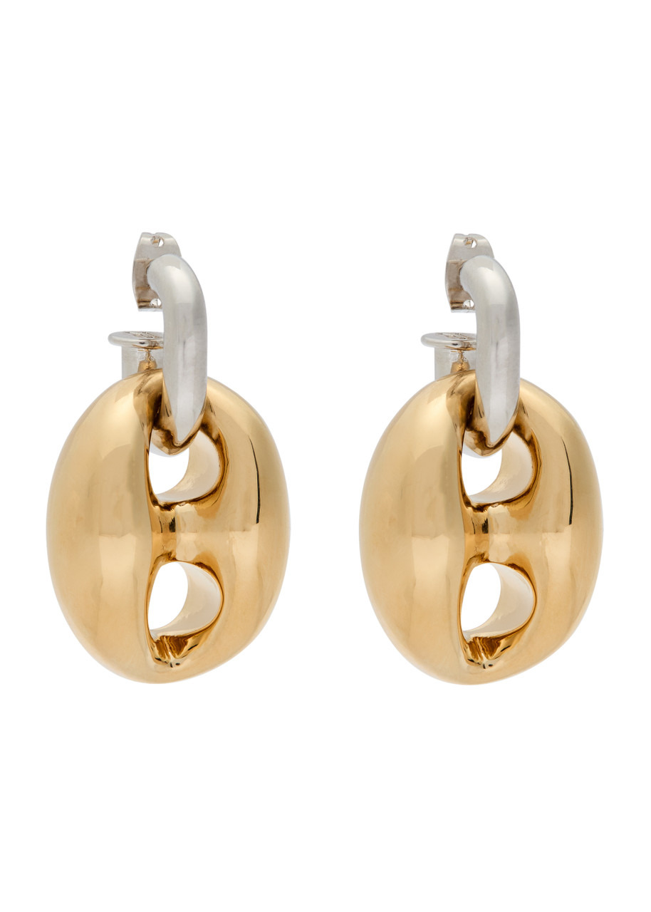 Info & Care Rabanne metal;drop earrings Two tone design with anchor chain link pendant, designer engraved Butterfly fastening for pierced ears Presented in a designer-stamped box with a pouch Please note, we are unable to refund or exchange for pierced earrings Size & Fit Drop: 3.5cm