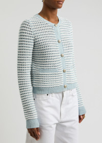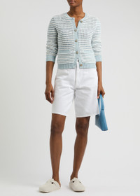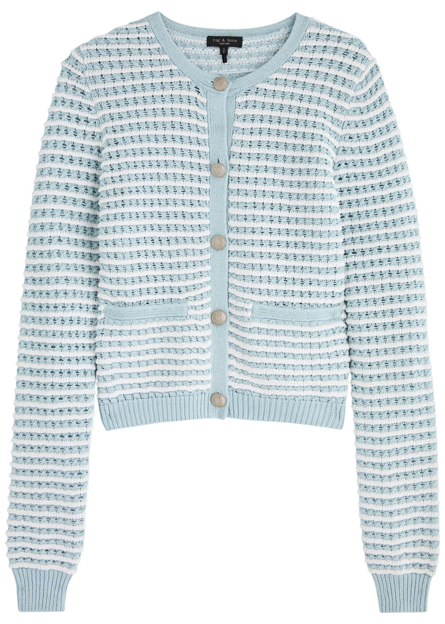 INFO & CARE - rag & bone cotton-blend cardigan - Crew-neck, striped design with open-knit weave, dropped shoulders, two slit pockets, ribbed trims - Button fastenings through front - 83% cotton, 17% nylon - Dry clean SIZE & FIT - Length shoulder to hem: 21.5 inches/ 54.5cm - Midweight - Regular fit - Model is 5'10"/ 178cm and wears a size small