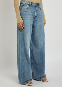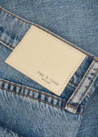 Info & Care rag & bone denim jeans High-rise fit, wide-leg cut, belt loops, five pockets, designer plaque at back, contrast stitching, designer hardware, slightly whiskered, faded and washed finish Partially concealed button and zip fastening at front 64% cotton, 36% lyocell Machine wash cold inside out to avoid colour transfer Size & Fit Front rise: 12.5 inches/ 32cm Inside leg length: 33 inches/ 84cm Midweight Model is 5'9"/ 175cm and wears a size;W27