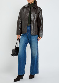 Info & Care rag & bone leather jacket Button;fastening cuffs,;front patch pockets, fully lined Button fastenings through front 100% cow leather; lining: 100% polyester Specialist clean Size & Fit Length shoulder to hem: 24 inches/ 61cm Midweight Boxy fit, straight cut Model is 5'9"/ 178cm and wears a size small