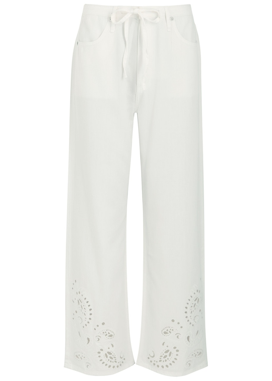 Phoebe Denim Beach Pants Ultra Featherweight in White Eyelet