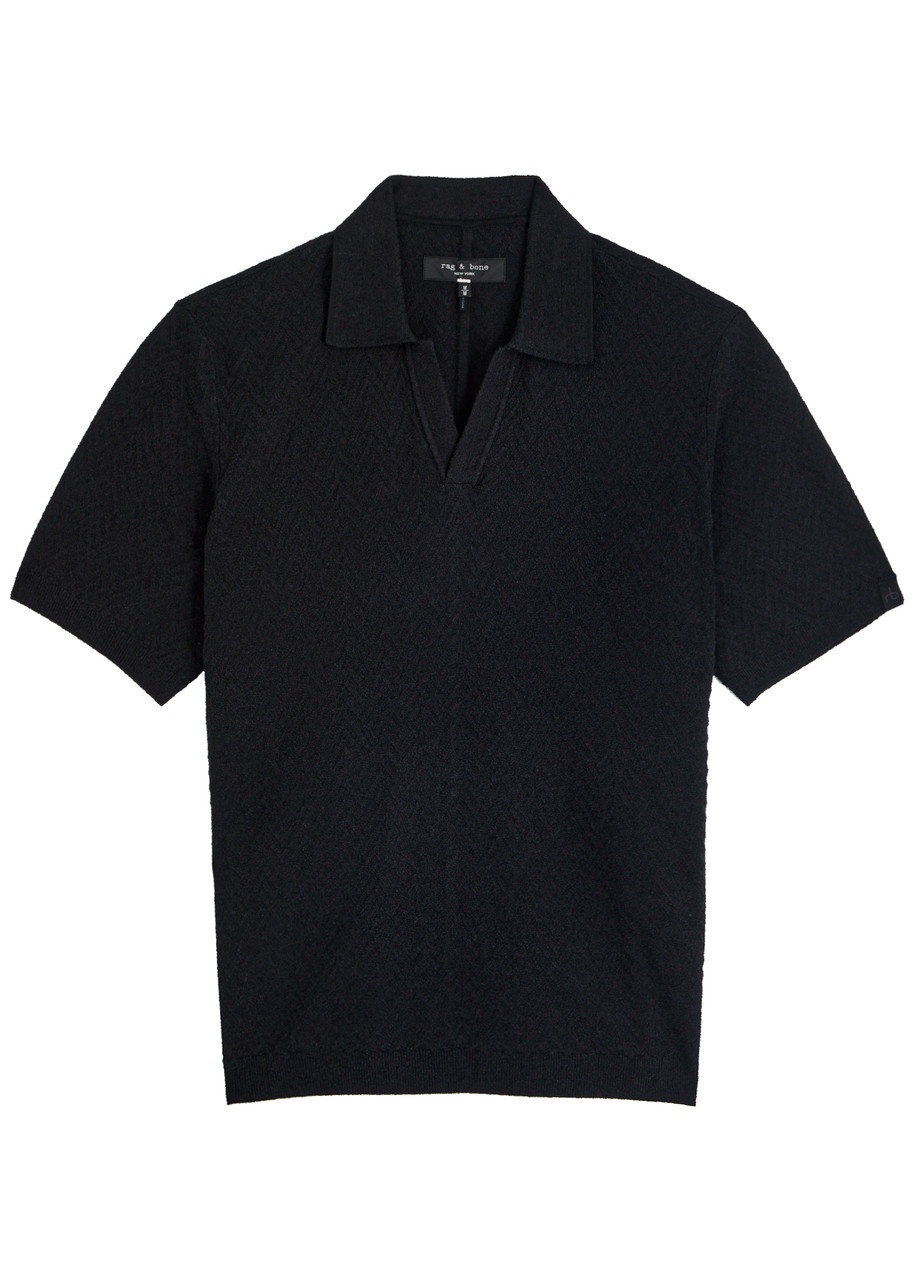Info & Care rag & bone terry polo shirt Camp collar, designer tag at cuff Slips on 44% cotton, 41% viscose,;15% nylon Machine wash; Size & Fit Length shoulder to hem: 27 inches/ 68.5cm Midweight Regular fit; Model is 6'3"/ 191cm, chest size is 35 inches and wears a size medium;