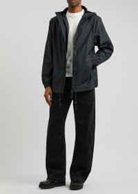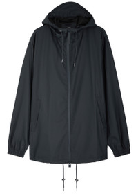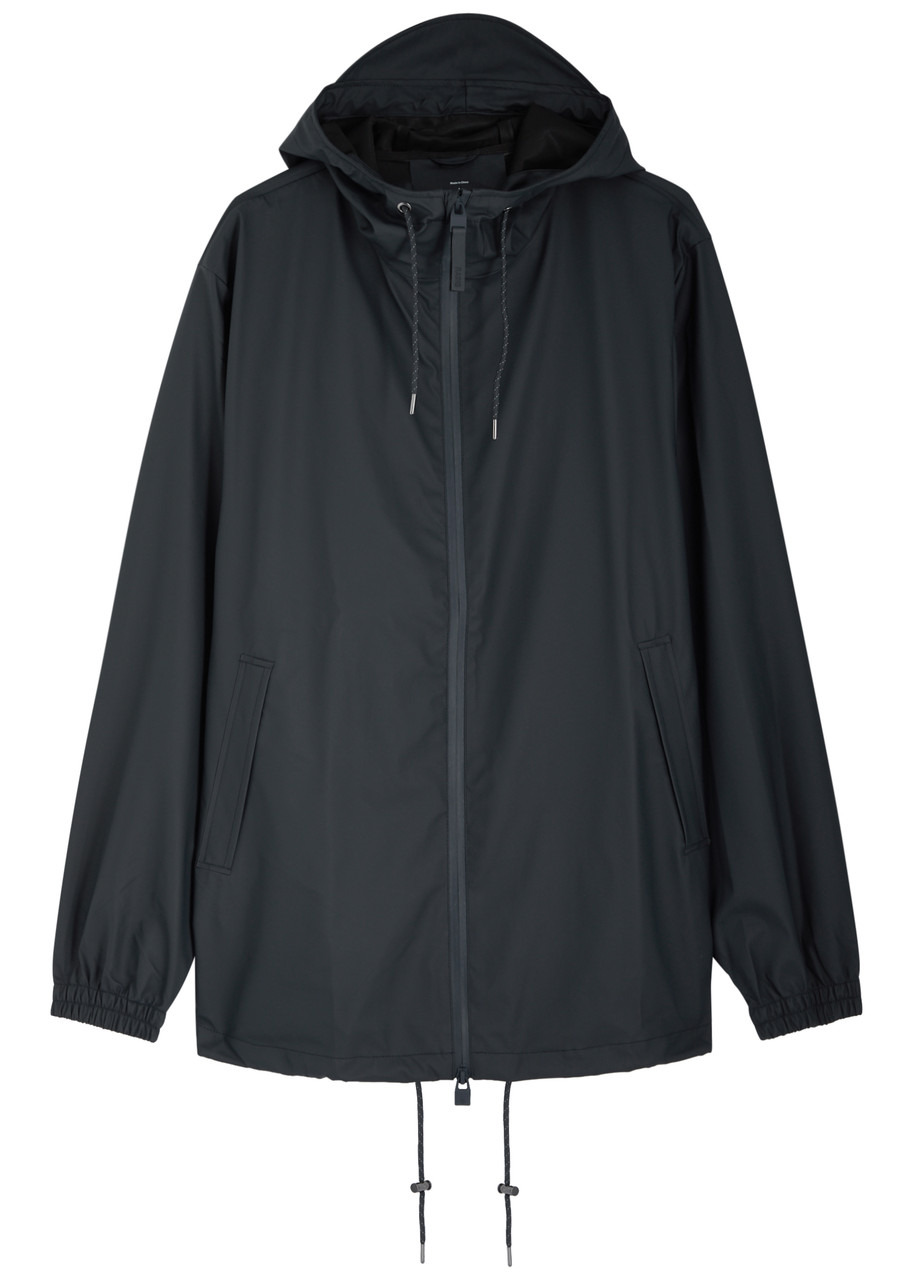 Info & Care Rains rubberised jacket Waterproof, windproof, drawstring hood with peak, high-neck, underarm ventilation eyelets,;;elasticated cuffs, side slip pockets, designer tag at side, storm flap, concealed drawstring-fastening hem Partially concealed zip-fastening through front 100% polyester; coating: 100% polyurethane Machine wash Size & Fit Length shoulder to hem: 30 inches/ 76cm Midweight Relaxed fit Model is 6'3"/ 191cm, chest size 38 inches and wears a size medium