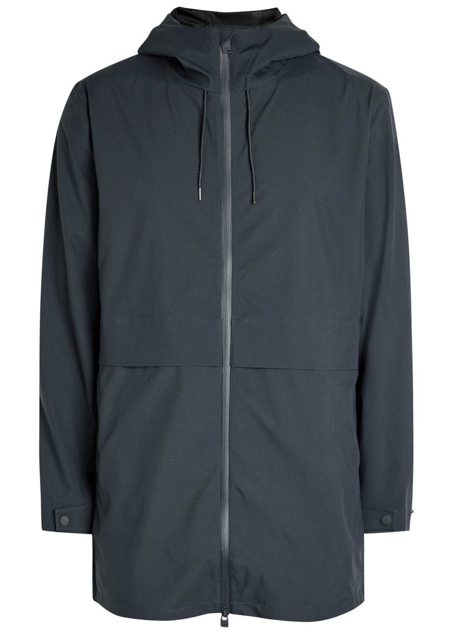 Info & Care Rains shell jacket Waterproof, windproof, breathable, drawstring hood at high-neck, designer stamp at sleeve,;adjustable press-stud fastening tab at cuffs, two front flap pockets, zip-fastening side pockets,;storm flap Two-way zip-fastening through front 100% polyester Machine wash Size & Fit Length shoulder to hem: 33 inches/ 84cm Midweight Relaxed fit Model is 6'1"/ 185cm, chest size 38 inches and wears a size medium