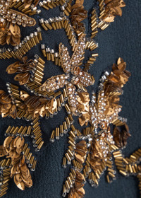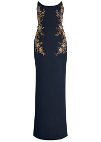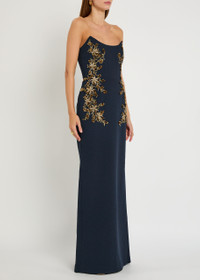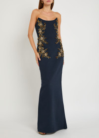 Info & Care Hand-finished Rebecca Vallance crepe;gown Crystal-embellished floral appliques, bead embellishments, strapless scoop-neck, boning through bodice,;back vent,;fully lined Concealed zip fastening at back 98% polyester, 2% elastane; lining: 97% polyester, 3% elastane Dry clean; Size & Fit Length shoulder to hem: 56 inches/ 142cm Midweight Slim fit, fitted at the waist Straight-cut Model is 5'9"/ 175cm and wears a size;UK8