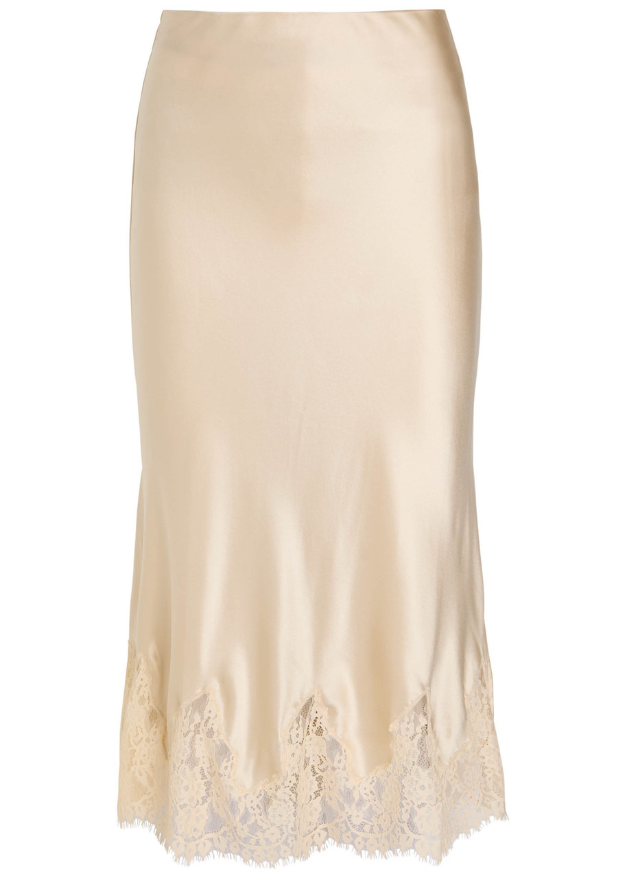 Reformation Carolina Lace-trimmed Silk-satin Midi Skirt
