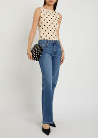 Info & Care Reformation stretch-denim jeans Mid-rise fit, straight-leg cut, belt loops, five pockets, whiskered and faded finish Partially concealed zip and button fastenings at front 94% regenerative cotton, 5% elastomultiester, 1% lycra Machine wash cold inside out to avoid colour transfer Size & Fit Front rise: 9.5 inches/ 24cm Inside leg length: 32 inches/ 81.5cm; Midweight Model is 5'10"/ 178cm and wears a size;W27