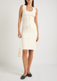 Info & Care Reformation stretch-cotton top and skirt set Top: pointelle, ribbed, scoop-neck, drawstring detail at bust, scalloped trims, slips on Skirt: pointelle, ribbed, elasticated drawstring waistband, scalloped trims, pull on 95% organic cotton, 4% nylon, 1% spandex Hand wash Size & Fit Length shoulder to hem: 18 inches/ 45.5cm Length waist to hem: 22 inches/ 56cm Midweight Slim fit Model is 5'9"/ 175cm and wears a size small