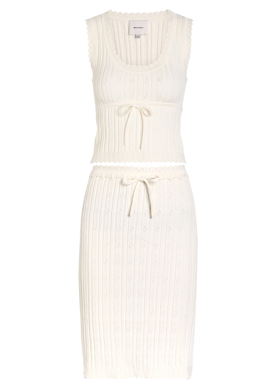 Reformation Erin Pointelle Stretch-cotton top and Skirt set
