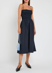 Info & Care Reformation stretch-cotton dress Adjustable shoulder strap, square-neck, smocked bodice, gathered details at waist, side slip pockets Slips on 98% organic cotton, 2% spandex Machine wash Size & Fit Length shoulder to hem:;48 inches/ 122cm Midweight Fit-and-flare style Model is 5'9"/ 175cm and wears a size US4
