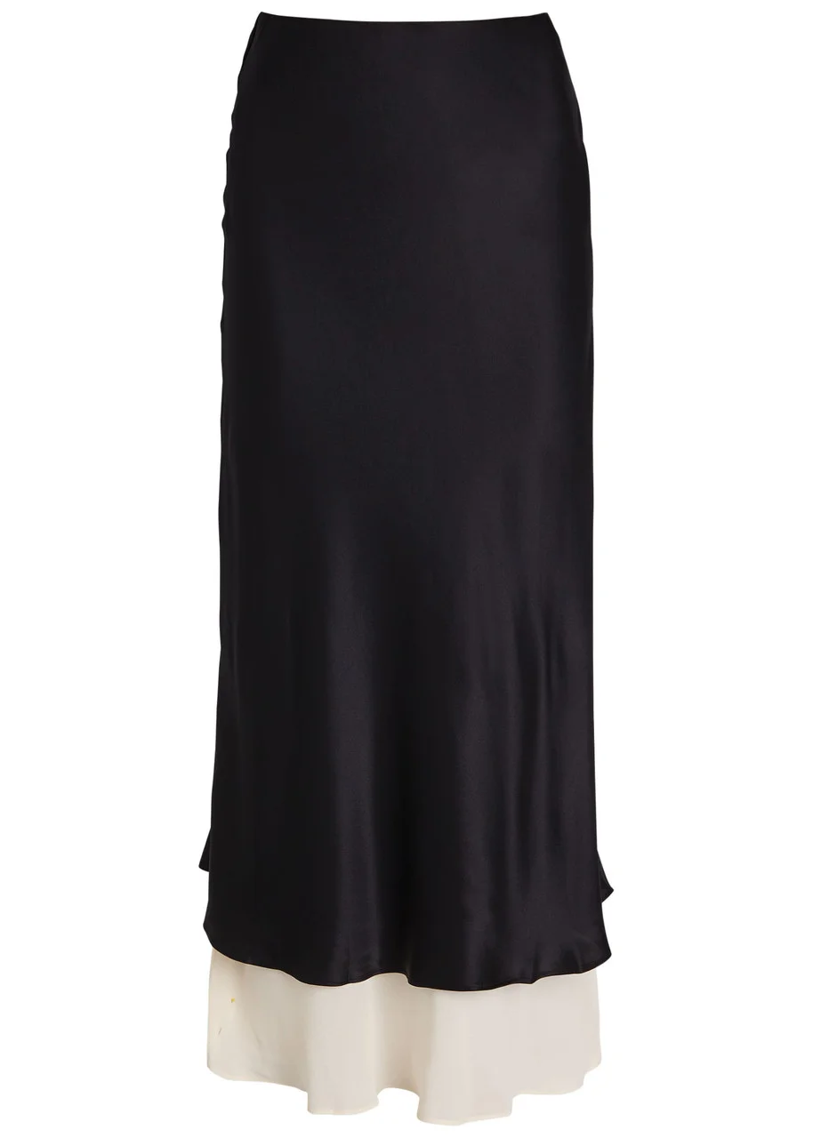 Reformation Marcia Colour-blocked Silk Midi Skirt