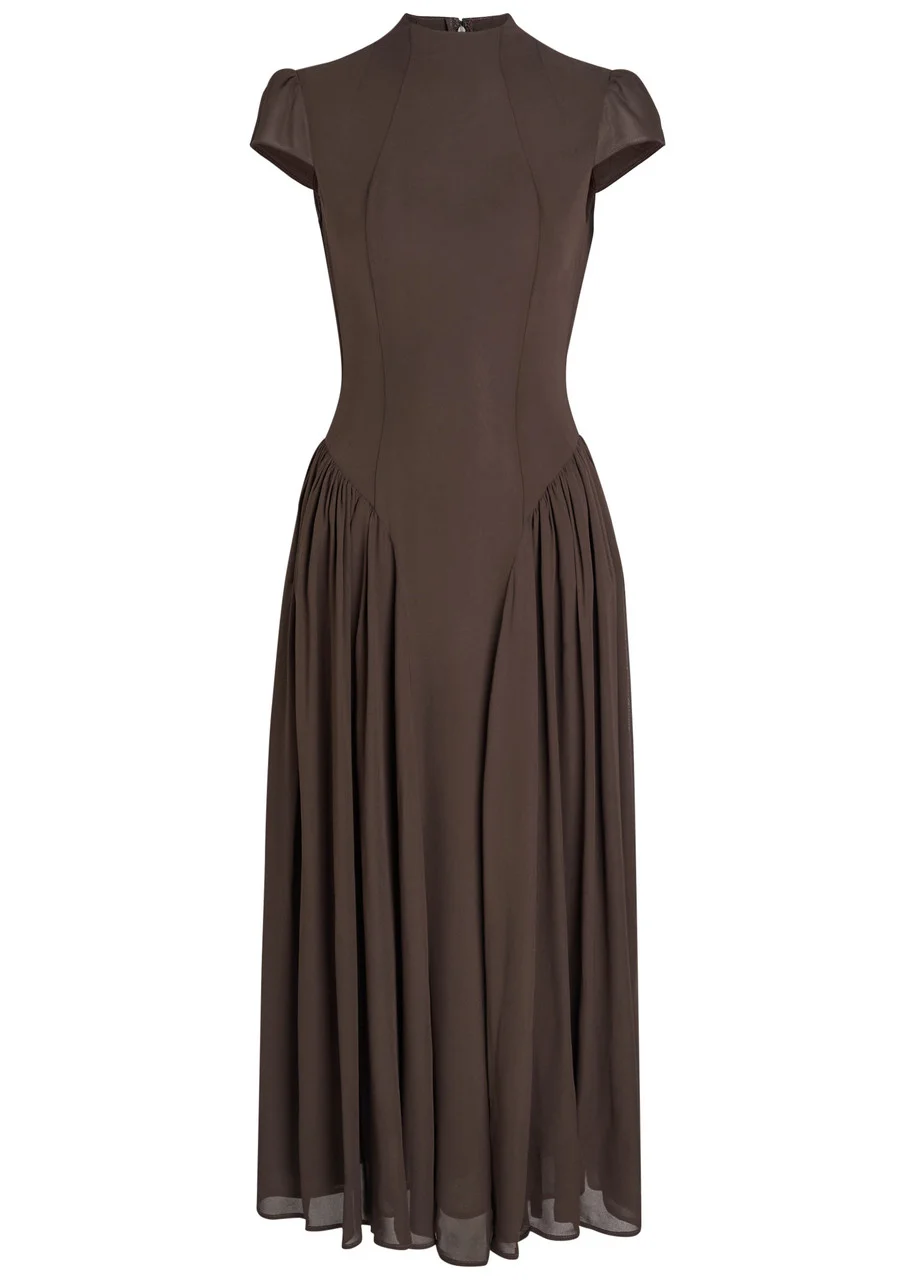 Reformation Maven Mock-neck Chiffon Midi Dress