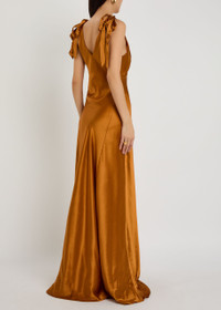 Info & Care Reformation silk gown V-neck, adjustable tie-fastening shoulder straps, pleats at bust, V-cut back, draped details, bias-cut, puddle train, fully lined Slips on 100% silk; lining: 100% viscose Dry clean Size & Fit Length shoulder to hem: 64 inches/ 162.5cm Midweight Slim fit Loose from the lower hips Model is 5'10"/ 175cm and wears a size small