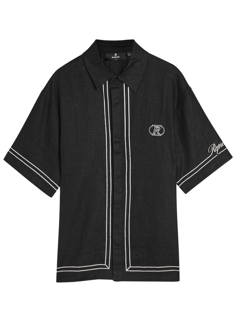 Info & Care Represent ramie shirt; Contrasting designer print, side splits at hem; Partially concealed push-stud fastenings through front; 100% ramie Machine wash Size & Fit Length shoulder to hem: 27 inches/ 68.5cm Midweight Slightly relaxed fit Model is 6'1"/ 186cm, chest size 38.5 inches and wears a size medium