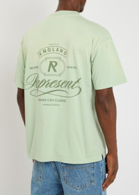 Info & Care Represent cotton T-shirt Ribbed crew-neck, dropped shoulders, designer print at chest and back,;side splits, designer-engraved plaque at hem; Slips on 100% cotton Machine wash; Size & Fit Length shoulder to hem: 28 inches/ 71cm Midweight Relaxed, loose fit Model is 6'1"/ 186cm, chest size 38.5 inches and wears a size medium