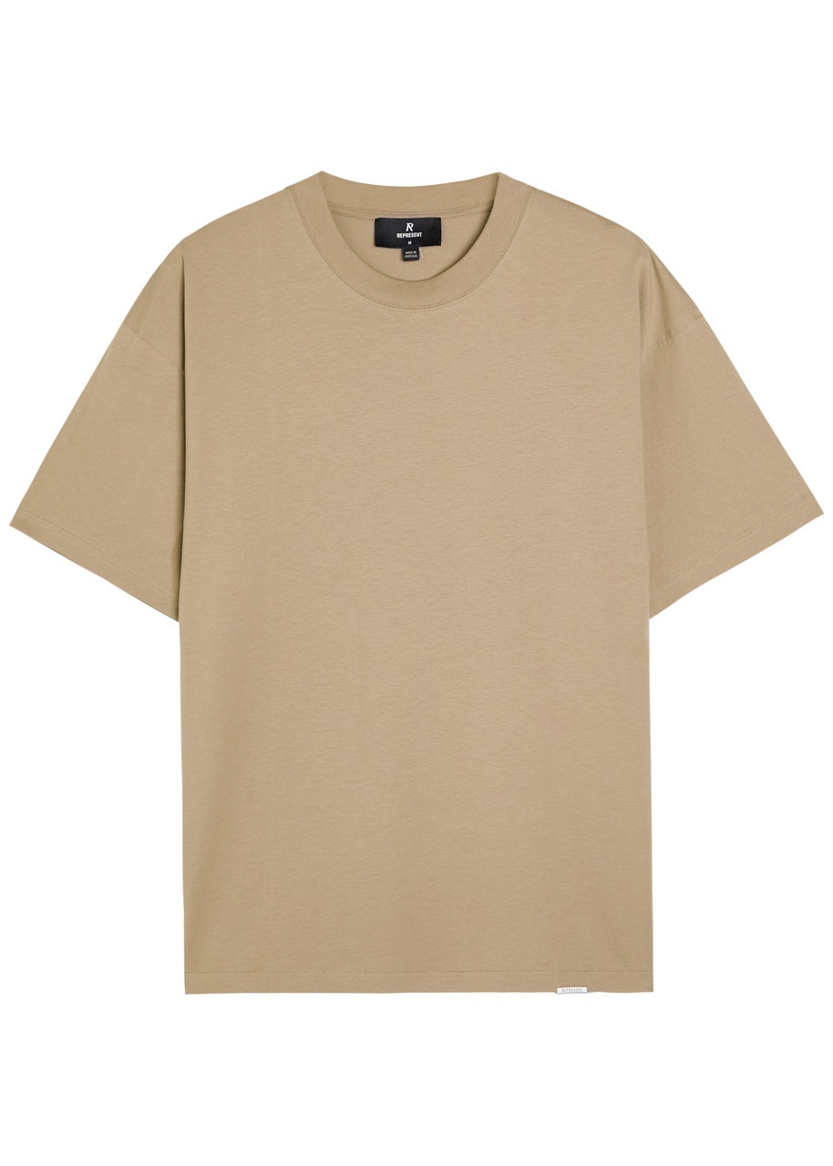 Info & Care Represent cotton T-shirt; Ribbed crew-neck, dropped shoulders, designer plaque at hem, logo embroidery at back; Slips on 100% cotton; Machine wash; ; Size & Fit Length shoulder to hem: 28 inches/ 71cm Midweight; Oversized fit; Model is 6'1"/ 186cm, chest size 38.5 inches and wears a size medium