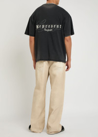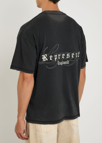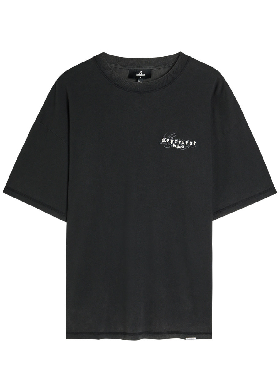 Info & Care Represent cotton T-shirt Ribbed crew-neck, embroidered logo at chest and back, designer plaque at hem Slips on 100% cotton; Machine wash Size & Fit Length shoulder to hem: 28 inches/ 71cm Midweight Relaxed fit Model is 6'1"/ 185cm, chest size 38.5 inches and wears a size medium