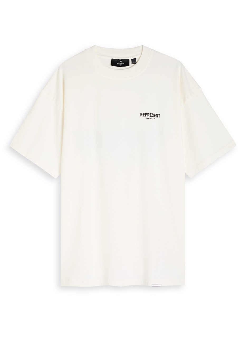 Info & Care Represent cotton T-shirt Ribbed crew-neck, dropped shoulders, logo;print at front and back, engraved designer plaque at hem Slips on 100% cotton Machine wash; Size & Fit Length shoulder to hem: 28.5 inches/ 72.5cm Midweight Relaxed fit Model is 6'3"/ 192cm, chest size 34.5 inches and wears a size medium