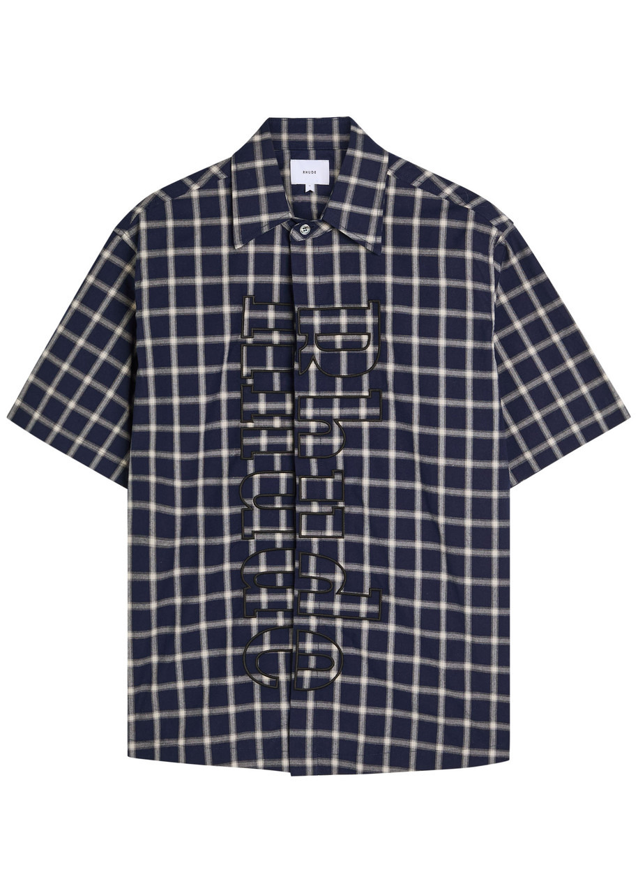 Info & Care Rhude cotton-poplin shirt Checked, logo embroidery through front Button fastenings through front 100% cotton Dry clean Size & Fit Length shoulder to hem: 28 inches/ 71cm Midweight Relaxed fit Model is 6'1"/ 185cm, chest size 38.5 inches and wears a size medium