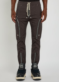 Info & Care Rick Owens;stretch-cotton cargo trousers Elasticated drawstring waistband, zip-fastening fly, side slip pockets, two zip-fastening front pockets, two press-stud fastening back flap pockets, zip-fastening elasticated cuffs, stud and eyelet embellishments Pull on; 97% cotton, 3% elastane Hand wash Size & Fit Inside leg length: 26 inches/ 66cm Midweight; Skinny tapered-leg cut; Model is 6'1"/ 181cm and wears a size IT48;