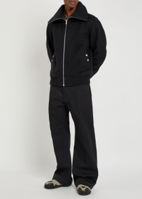 Info & Care Rick Owens wool jacket Funnel-neck, push-stud fastening side pockets, ribbed trims, two internal zip-fastening pockets, fully lined Zip fastening through front 100% wool Spot clean Size & Fit Length shoulder to hem: 27 inches/ 68.5cm Heavyweight Relaxed fit Model is 6'1"/ 185cm, chest size 38.5 inches and wears a size;IT46