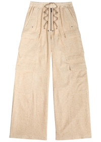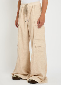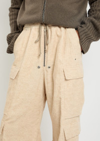 Info & Care Rick Owens;corduroy cargo trousers Elasticated drawstring waistband, zip-fastening fly, side slip pockets, four press-stud fastening front flap pockets, stud and eyelet embellishments, two press-stud fastening back slit pockets Pull on 74% cotton,;26% linen Hand wash Size & Fit Inside leg length: 32 inches/ 81cm Midweight Wide flared-leg cut Model is 6'1"/ 186cm;and wears a size IT48