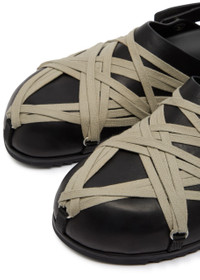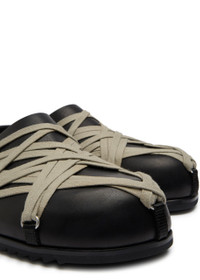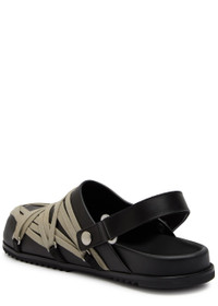 Info & Care Rick Owens leather;sliders Cross-over lace design, designer-stamped contoured footbed, gripped rubber sole, round toe Adjustable Velcro-fastening slingback ankle strap Size & Fit Only available in full sizes, go up to the nearest whole size if you take a half size;