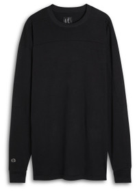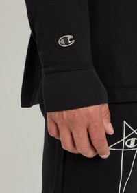 Info & Care Rick Owens X Champion cotton T-shirt Crew-neck, slightly dropped shoulders, embroidered designer applique, ribbed trims Slips on 100% cotton Hand wash Size & Fit Length shoulder to hem: 32.5 inches/ 82.5cm Midweight Slightly oversized fit Model is 6'1"/ 185cm, chest size 40 inches and wears a size medium