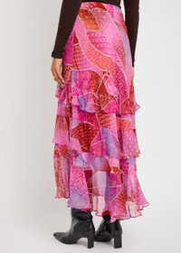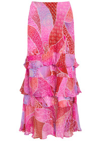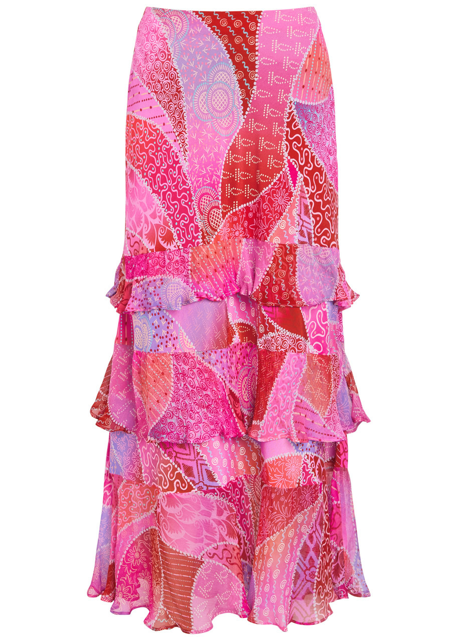 Info & Care Rixo;crepe de chine;skirt Patterned, chiffon ruffled trims, tiered Concealed zip fastening at;side 100% viscose Dry clean Size & Fit Length waist to hem: 39 inches/ 99cm Midweight Loose fit, designed to sit at waist Model is 5'8"/ 173cm and wears a size;UK8