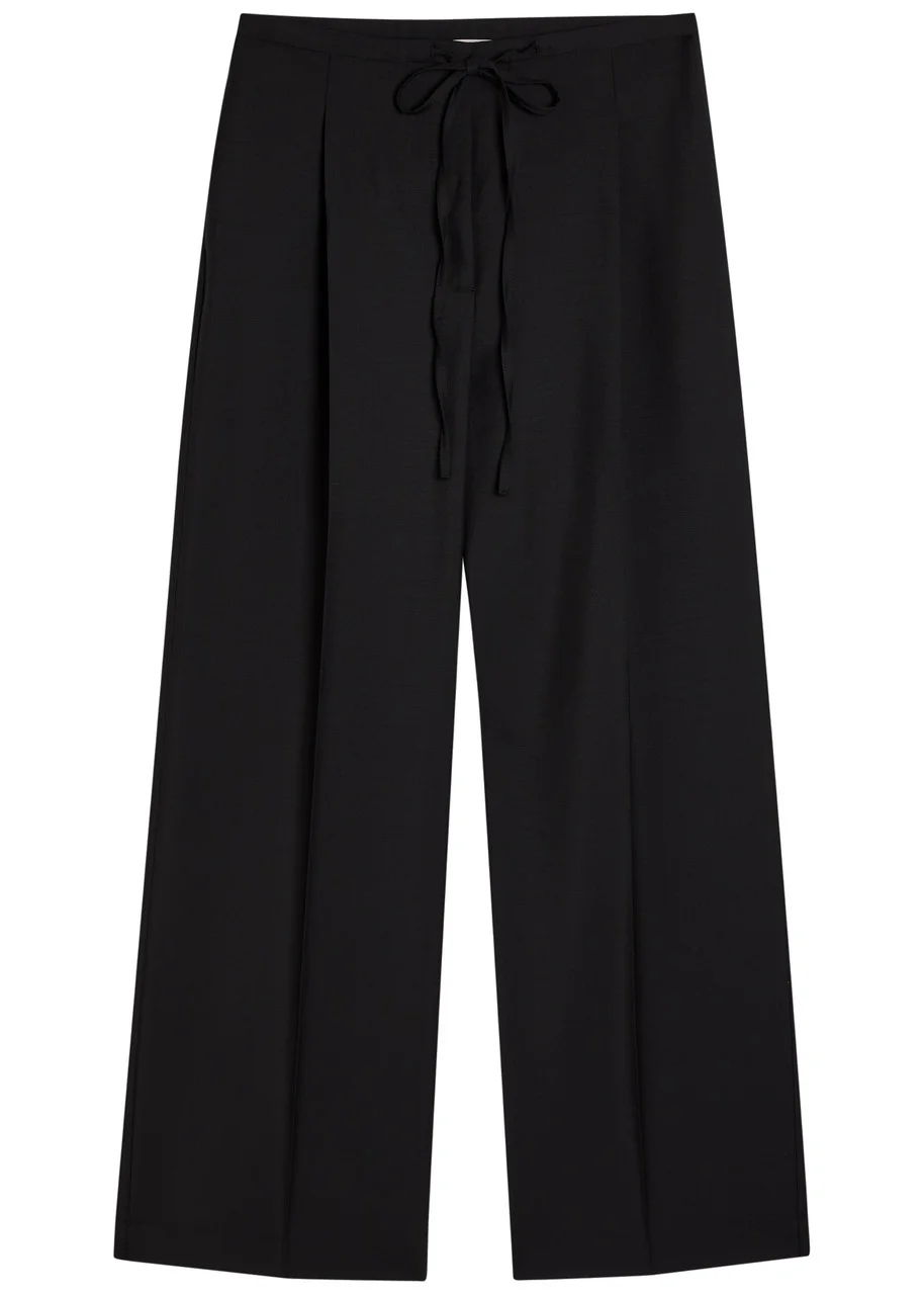 Info & Care Rohe wool-blend trousers Drawstring waist, side slip pockets, pleats at waist, pressed crease through legs, button-fastening back slit pockets Concealed button and zip fastenings at front 73% virgin wool, 27% mohair wool Dry clean Size & Fit Inside leg length: 32 inches/ 81cm Midweight Relaxed fit, straight-leg;cut Model is 5'10"/ 178cm and wears a size;FR36