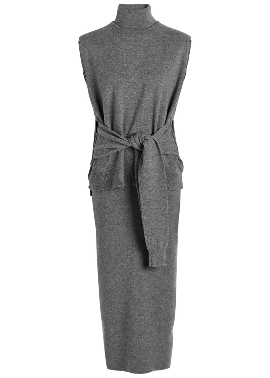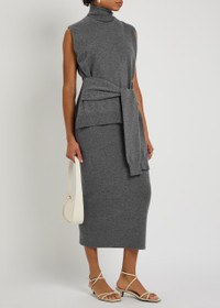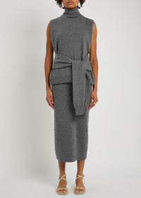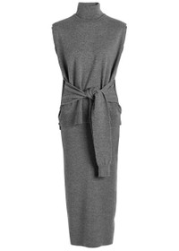 Info & Care ROHE wool-blend dress Layered design, melange knit, high-neck, detachable vest overlay, waist ties Slips on 87%;merino wool, 10% cashmere, 3% elastane Dry clean Size & Fit Length shoulder to hem: 51 inches/ 130cm Midweight Slim fit, loose overlay Model is 5'9"/ 175cm and wears a size;FR36