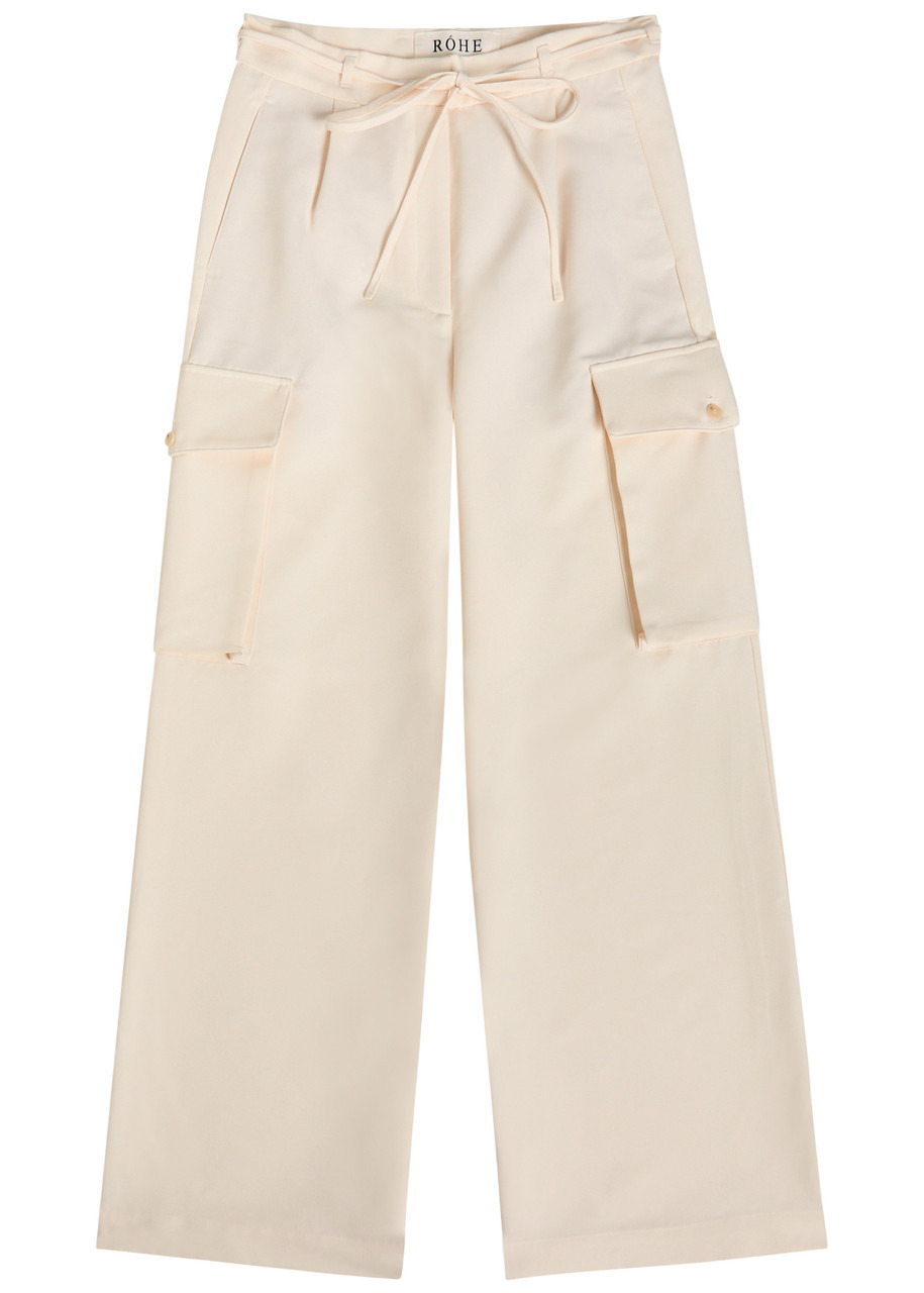 Info & Care Rohe woven trousers Belt loops, tie-fastening belt, pleats at waist, side slip pockets, three button-fastening flap pockets; Concealed button, hook and zip fastening at front 100% recycled polyester Dry clean Size & Fit Inside leg length: 32 inches/ 81cm Midweight Wide-leg cut, designed to sit high on the waist Model is 5'9"/ 175cm and wears a size;FR36